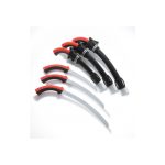 Het gebogen blad in combinatie met de revolvergreep is ideaal voor het werk boven schouderhoogte en onder kniehoogte. Je kunt makkelijk boven op de tak blijven zagen, terwijl je arm, pols en hand in de natuurlijke positie blijven. Bovendien voel je goed aan wanneer het einde van de zaagsnede wordt bereikt. Hierdoor werk je efficiënt, zelfs in de meest moeilijke omstandigheden. Door de lage rug van deze zaag ben je in staat om met precisie in dicht begroeide ruimte te werken, zonder omringende takken te beschadigen. Het sterke zaagblad heeft een hoge stijfheid en een rij vlijmscherpe, agressieve tanden die een gladde zaagwond achterlaten. De comfortabele Genki revolvergreep heeft geen bouten of schroeven, maar bestaat slechts uit twee rubberen delen die het staal perfect en veilig omsluiten. Handig, er komt dus geen enkel gereedschap aan te pas! De aluminium holster is zo ontworpen dat de zaag er in geen mogelijkheid uit valt, maar wel met één hand is los te trekken. De holster is licht van gewicht en zowel voor rechts- als linkshandigen te monteren. Maak je Tsurugi compleet met de beschikbare leg straps zodat je de zaag altijd binnen handbereik hebt. TIP: Het zaagblad moet schoon gehouden worden, anders gaat de zaagwerking verloren. Hars lost op in olijfolie en dit is dan ook een effectieve, milieuvriendelijke manier om het blad te reinigen. Agressievere middelen kunnen het rubber van de handgreep aantasten. Wanneer je de zaag niet gebruikt, maak deze dan goed droog. Bewaar de zaag in de holster op een droge plaats.