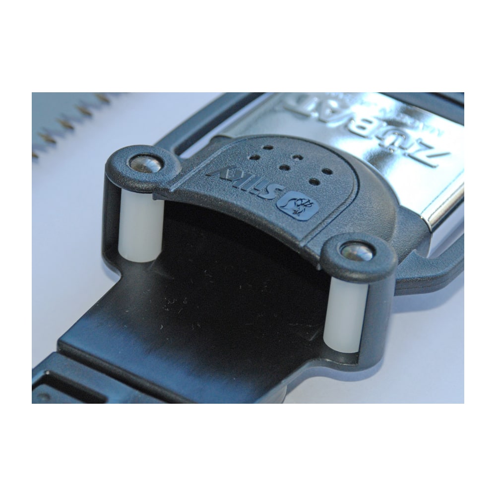 Productomschrijving De Zübat behoort tot de basisuitrusting van iedere boomverzorger. Het is beslist de meest gebruikte handzaag door boomverzorgers wereldwijd. Niet zo gek, de Zübat heeft alles wat je zoekt in een snoeizaag. Een veelzijdige, machtige trekzaag die je zowel bij precisiesnoeiwerk in kleine ruimtes als bij het demonteren van bomen gebruikt. De perfecte vorm van het agressief gebogen blad in combinatie met Silky’s unieke vertanding geven je de snelheid, kracht en nauwkeurigheid die je nodig hebt in de boom. Laat je kettingzaag gerust wat vaker liggen, want deze krachtige zaag is een plezier om mee te werken. Zelfs bij veelvuldig gebruik blijven de tanden lang scherp. Hierdoor wordt altijd een gladde zaagwond achtergelaten die makkelijk wordt overgroeid. Bij het werk boven schouderhoogte en onder kniehoogte kun je met het gebogen blad boven op de tak blijven zagen, terwijl je arm, pols en hand in de natuurlijke positie blijven. Hierdoor werk je efficiënt, zelfs in de meest moeilijke omstandigheden. Door de neus aan het uiteinde van het blad houd je de zaag makkelijk in de zaagsnede en beter onder controle. Het zaagblad loopt door in de handgreep waardoor deze stabiele zaag perfect is uitgebalanceerd. De uit rubber gegoten handgreep ligt comfortabel in de hand en absorbeert de trillingen. De naam Zübat komt voort uit het geluid dat een Samurai zwaard maakt wanneer deze zijn doel raakt. De gebruikers van deze zaag zullen weten waarom.