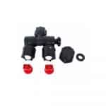 De dubbele sproeikop met 2 zwenkbare sproeikophouders biedt talloze gebruiksmogelijkheden. Zo is het gelijktijdige behandelen van twee plantenrijen of het spuiten in een hoek bijv. mogelijk in combinatie met de telescopische of verlengingslansen voor het besproeien van de onderkant van de bladeren of van moeilijk bereikbare plaatsen. De sproeikophouders zijn telkens met ca. 270° zwenkbaar. Standaard twee voorgemonteerde sproeikoppen met holle kern voor opgaande gewassen en twee vlakstraalsproeikoppen voor de behandeling van oppervlakken. Bovendien bevat de set blindpluggen voor het afsluiten van een sproeikop. Met de kartelschroef kan de dubbele sproeikop zonder gereedschap op aanwezige sproeilansen worden gemonteerd. Geschikt voor : 424, 425, 435, 473, 475, 416LI, 417, 441, 442