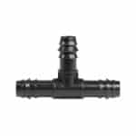 T-stuk PP. Geschikt voor druppelbevloeiingsslangen en PE40 met een maximale wanddikte van 1.5mm.