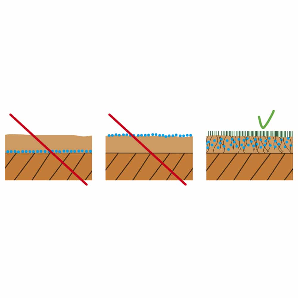 TerraCottem turf, grondverbeteraar of bodemverbeteraar voor gazon en sportvelden, werkt op het niveau van de wortels van de plant. Zij worden bij het planten met de grond vermengd op 20cm diepte.