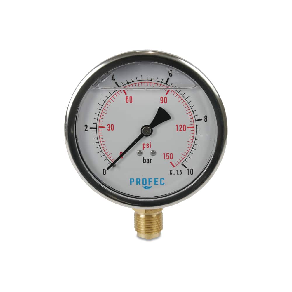 Manometer 100mm glycerine gevuld onderaansl. 1/2